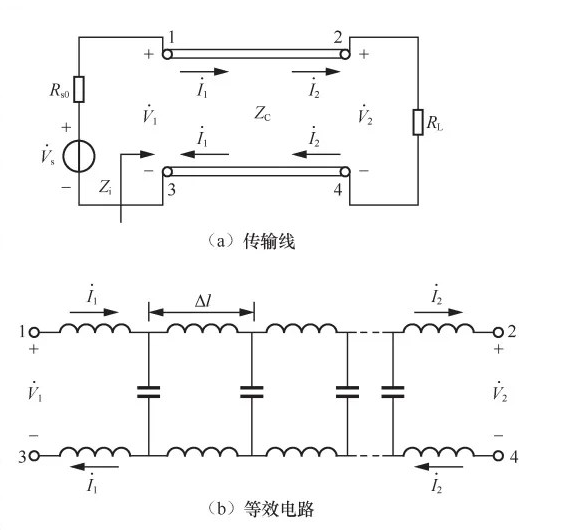 传输线是连接信号源和负载的两根导线,两根导线之间产生电场、产生磁场,有电容性质、电感性质,会储存和释放能量。因此传输线实际上是一个具有电容、电感和电阻的电路。